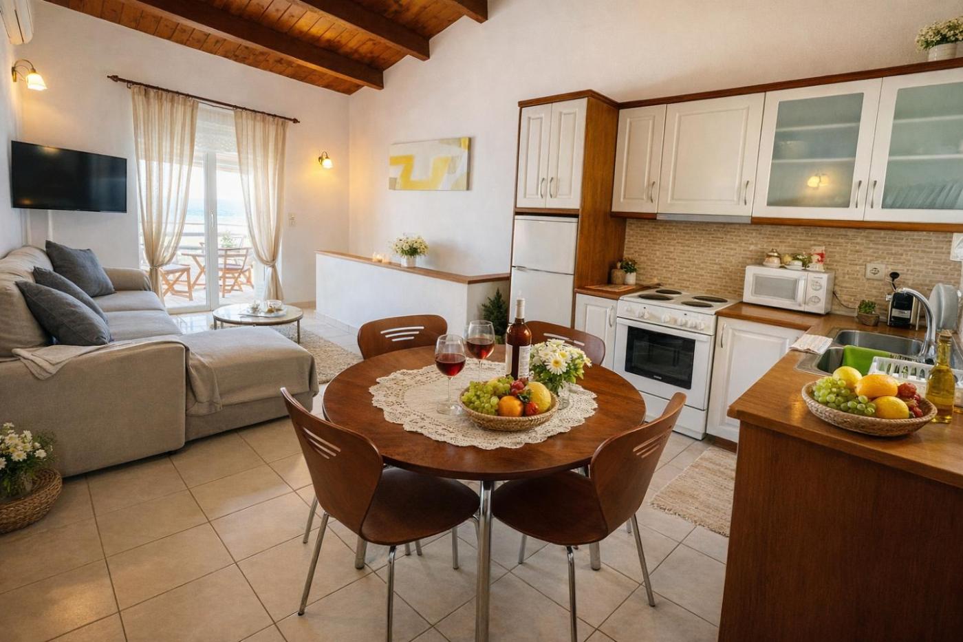 The spacious apartment with a terrace and sea views features 1 bedroom, a living room, a flat-screen TV, an equipped kitchen with an oven and a microwave, and 1 bathroom with a walk-in shower. Towels and bed linen are provided in the apartment. For added privacy, the accommodation has a private entrance and soundproofing.